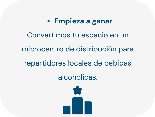 Recibe pagos mensuales por colaborar con nosotros como punto logístico de entrega de alcohol a domicilio.